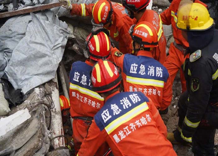 ರಕ್ಷಣಾ ಕಾರ್ಯಾಚರಣೆ ಮುಂದುವರಿದಿದ್ದು, ಸುಮಾರು 160 ಕ್ಕೂ ಹೆಚ್ಚು ಅಗ್ನಿಶಾಮಕ ಟ್ರಕ್ಗಳು ಸ್ಥಳದಲ್ಲಿವೆ. ಕಳಪೆ ಕಾಮಗಾರಿ ಹಿನ್ನೆಲೆ ಛಾವಣಿ ಕುಸಿದಿದ್ದು, ಕಟ್ಟಡ ನಿರ್ಮಾಣ ಉಸ್ತುವಾರಿಗಳನ್ನು ಬಂಧಿಸಲಾಗಿದೆ.