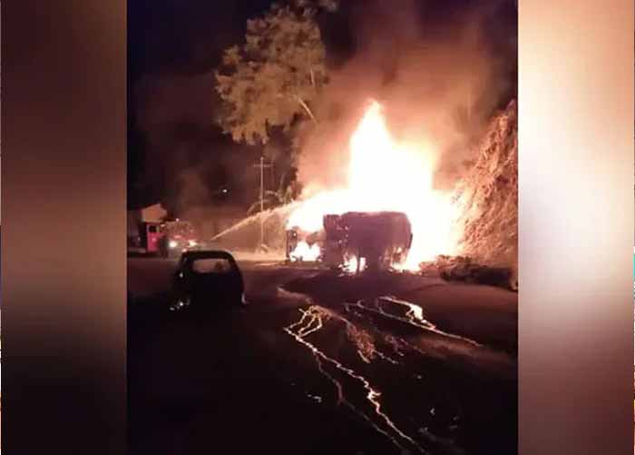ಟ್ಯಾಂಕರ್‌ನಿಂದ ಸೋರುತ್ತಿದ್ದ ಪೆಟ್ರೋಲ್ ಸಂಗ್ರಹಿಸಲು ಸ್ಥಳೀಯರು ಯತ್ನಿಸಿದಾಗ ಟ್ಯಾಂಕರ್‌ಗೆ ಬೆಂಕಿ ಹೊತ್ತಿಕೊಂಡಿದೆ.