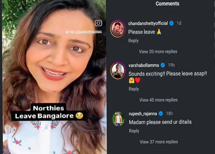 ಸುಗಂಧಾ ಎಂಬ ನಾರ್ಥಿ ಲೇಡಿ ಈಗಾಗಲೇ ರೀಲ್ಸ್ ಮಾಡಿ ಸಂಕಷ್ಟಕ್ಕೆ ಸಿಲುಕಿದ್ದಾರೆ, ಕೆಲಸದಿಂದ ಅವರನ್ನು ಕಿತ್ತುಹಾಕಿದ್ದು, ನಿಜವಾಗಿಯೂ ಬೆಂಗಳೂರು ಬಿಡುವ ಪರಿಸ್ಥಿತಿ ಬಂದಿದೆ. ಸುಗಂಧ ರೀಲ್ಸ್ಗೆ ನಮ್ಮ ಸೆಲೆಬ್ರಿಟಿಗಳ ಕಮೆಂಟ್ ಹೀಗಿದೆ ನೋಡಿ..