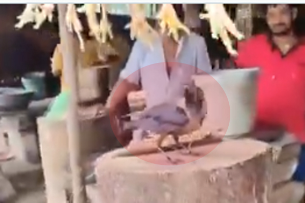 ಹೌದು. ಕಾಗೆಯೊಂದು ಕೋಳಿ ಅಂಗಡಿಗೆ ಆಹಾರ ಹುಡುಕುತ್ತಾ ಬಂದಿತು. ಕೋಳಿ ಅಂಗಡಿಯ ಮಾಲೀಕರು ಕಾಗೆಯನ್ನು ಕಂಬಕ್ಕೆ ಹಗ್ಗದಿಂದ ಕಟ್ಟುತ್ತಾರೆ. ಇದರಿಂದ ಕಾಗೆ ಜೋರಾಗಿ ಕಿರುಚುತ್ತದೆ.