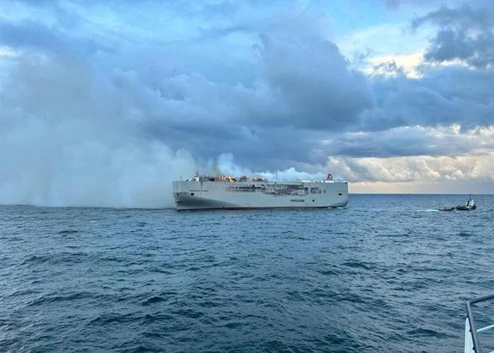 ಮೂರು ಸಾವಿರ ಕಾರುಗಳನ್ನು ಹೊತ್ತು ಸಾಗುತ್ತಿದ್ದ ಸರಕು ಸಾಗಣೆಯ ಹಡಗಿನಲ್ಲಿ ಕಾಣಿಸಿಕೊಂಡ ಬೆಂಕಿಯು ಇಡೀ ಹಡಗಿಗೆ ವ್ಯಾಪಿಸಿದೆ. ಬಳಿಕ 23 ಸಿಬ್ಬಂದಿಯನ್ನು ದೋಣಿಗಳು ಮತ್ತು ಹೆಲಿಕಾಪ್ಟರ್‌ಗಳನ್ನು ಬಳಸಿ ರಕ್ಷಿಸಲಾಗಿದೆ. ಆದರೆ ಬೆಂಕಿಯನ್ನು ನಂದಿಸುವ ಪ್ರಯತ್ನ ವಿಫಲವಾಗಿದೆ ಎಂದು ಕರಾವಳಿ ಸಿಬ್ಬಂದಿ ತಿಳಿಸಿದ್ದಾರೆ.