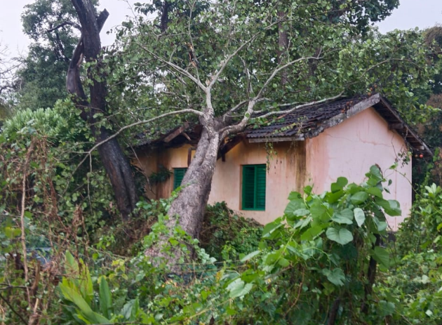 ಕಿರವತ್ತಿ- ಹೊಸಳ್ಳಿ ಗಾಂವಠಾಣ ಅಂಗನವಾಡಿ ಶಾಲೆ ಮೇಲೆ ಬೃಹತ್ ಮರ ಬಿದ್ದು ಶಾಲೆಗೆ ಅಪಾರ ಹಾನಿಯಾಗಿದೆ.