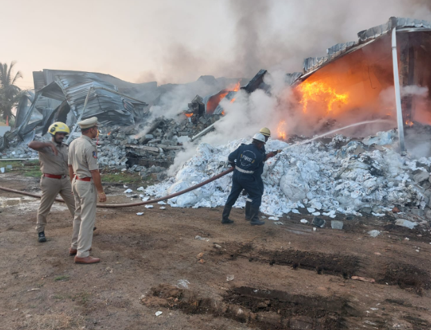 ರಂಗಾರೆಡ್ಡಿ ಜಿಲ್ಲೆಯ ನಂದಿಗಾಮ ಪ್ರದೇಶದಲ್ಲಿ ಮಧ್ಯರಾತ್ರಿ ಡೈಪರ್ ತಯಾರಿಕಾ ಘಟಕದಲ್ಲಿ ಭಾರಿ ಬೆಂಕಿ ಕಾಣಿಸಿಕೊಂಡಿದೆ ಎಂದು ಅಗ್ನಿಶಾಮಕ ಇಲಾಖೆ ಅಧಿಕಾರಿಗಳು ತಿಳಿಸಿದ್ದಾರೆ.