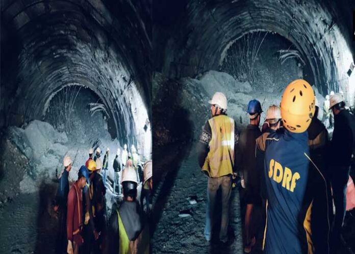 ನಿರ್ಮಾಣಹಂತದ ಸುರಂಗ ಮಾರ್ಗ ಕುಸಿದಿರುವ ಘಟನೆ ಉತ್ತರಾಖಂಡದಲ್ಲಿ ನಡೆದಿದೆ.ಇಂದು ಬೆಳಗ್ಗೆ 5.30ರ ಸುಮಾರಿಗೆ ಉತ್ತರಕಾಶಿಯ ಸಿಲ್ಕ್ಯಾರಾದಿಂದ ದಾಂಡಲ್ಗಾಂವ್ವರೆಗೆ ನಿರ್ಮಾಣ ಹಂತದಲ್ಲಿದ್ದ ಸುರಂಗದ ಒಂದು ಭಾಗ ಕುಸಿದಿದ್ದು, 36ಕಾರ್ಮಿಕರು ಅವಸೇಷಗಳಡಿ ಸಿಲುಕಿರುವ ಶಂಕೆ ವ್ಯಕ್ತವಾಗಿದೆ.