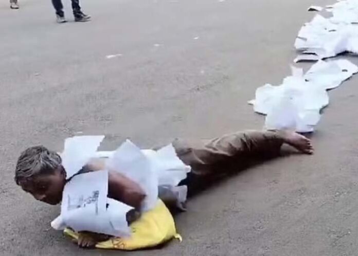 ಭ್ರಷ್ಟಾಚಾರ ಆರೋಪದಡಿ ಗ್ರಾಮದ ಸರಪಂಚ್ ವಿರುದ್ಧ ಕ್ರಮ ಕೈಗೊಳ್ಳುವಂತೆ ಒತ್ತಾಯಿಸಿ ಮಧ್ಯಪ್ರದೇಶದ ನೀಮಚ್ನಲ್ಲಿ ಜಿಲ್ಲಾಧಿಕಾರಿ ಕಚೇರಿಗೆ ವ್ಯಕ್ತಿಯೊಬ್ಬರು ದಾಖಲೆಗಳ ಸರಮಾಲೆಯನ್ನು ಕೊರಳಿಗೆ ಹಾಕಿಕೊಂಡು ರಸ್ತೆಯಲ್ಲಿ ಉರುಳಾಡಿಕೊಂಡು ಬಂದ ಘಟನೆ ನಡೆದಿದ್ದು ಸೋಷಿಯಲ್ ಮೀಡಿಯಾದಲ್ಲಿ ವೈರಲ್ ಆಗಿದೆ.