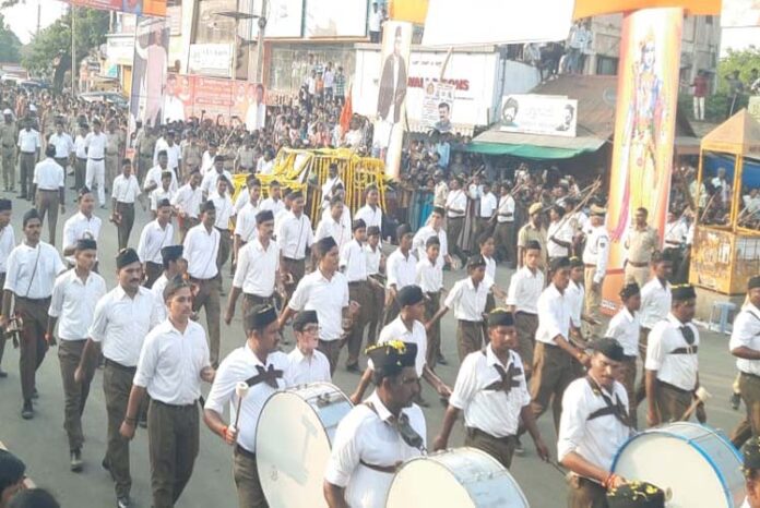ರಾಷ್ಟ್ರೀಯ ಸ್ವಯಂ ಸೇವಕ ಸಂಘದ ವಾರ್ಷಿಕೋತ್ಸವದ ನಿಮಿತ್ತ ನಗರದಲ್ಲಿ ಭಾನುವಾರ ನಡೆದ ರಾಷ್ಟ್ರೀಯ ಸ್ವಯಂ ಸೇವಕ ಸಂಘದ ಗಣವೇಷದಾರಿಗಳ ಪಥ ಸಂಚಲನ ದೇಶಾಭಿಮಾನ ಮೂಡಿಸಿತು.
