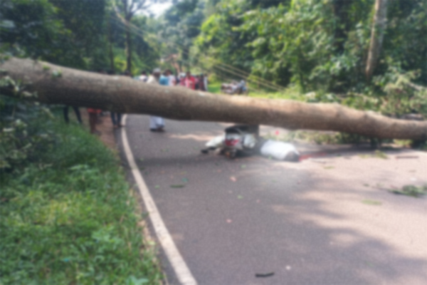 ಚಲಿಸುತ್ತಿದ್ದ ಸ್ಕೂಟಿಯ ಮೇಲೆ ರಸ್ತೆಯ ಪಕ್ಕದಲ್ಲಿದ್ದ ಬೃಹತ್ ಮರ ಬಿದ್ದು ಸ್ಕೂಟಿ ಸವಾರ ಸ್ಥಳದಲ್ಲೇ ಸಾವನ್ನಪ್ಪಿದ ದಾರುಣ ಘಟನೆ ದಕ್ಷಿಣ ಕನ್ನಡ ಜಿಲ್ಲೆಯ ಕಡಬ -ಪಂಜ ರಸ್ತೆಯ ಕೋಡಿoಬಾಳ ಸಮೀಪ ಪುಳಿಕುಕ್ಕು ಎಂಬಲ್ಲಿ ನಡೆದಿದೆ.