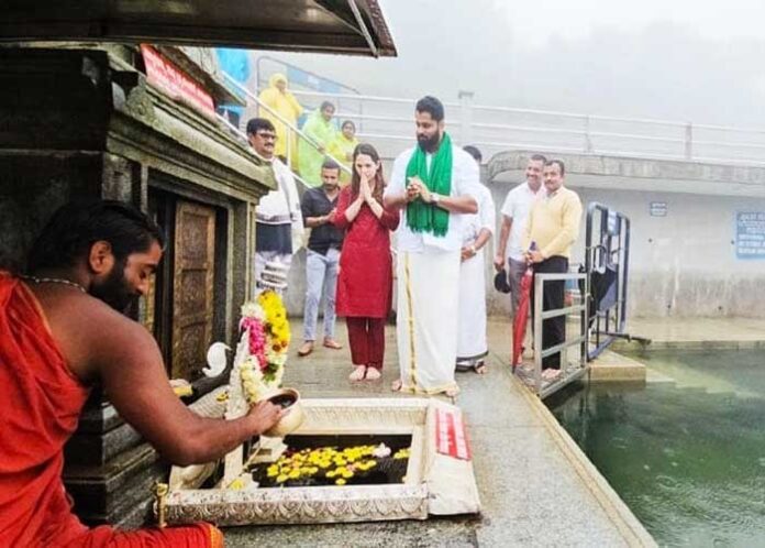 ಸ್ಯಾಂಡಲ್ವುಡ್ ನಟ ಅಭಿಷೇಕ್ ಅಂಬರೀಷ್ ಅವರು ತಮ್ಮ ಪತ್ನಿ ಅವಿವಾ ಜೊತೆ ಕಾವೇರಿ ಉಗಮಸ್ಥಾನ ತಲಕಾವೇರಿಗೆ ಭೇಟಿ ನೀಡಿ ಕಾವೇರಿ ಮಾತೆಗೆ ವಿಶೇಷ ಪೂಜೆ ಸಲ್ಲಿಸಿದರು.