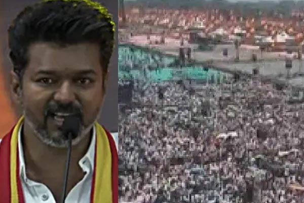 ತಮಿಳು ನಟ ವಿಜಯ್ ತಮ್ಮ ಪಕ್ಷವಾದ ತಮಿಳಗ ವೆಟ್ರಿ ಕಳಗಂನ ಮೊದಲ ಸಮಾವೇಶ ವಿಲುಪುರಂ ಜಿಲ್ಲೆಯ ವಿಕ್ರವಂಡಿ ಪ್ರದೇಶದಲ್ಲಿ ನಡೆಸಿದ್ದು, ಲಕ್ಷಾಂತರ ಜನ ಭಾಗಿಯಾಗಿದ್ದಾರೆ. ನಟ ವಿಜಯ್ ತಮ್ಮ ಪಕ್ಷದ ಕಾರ್ಯಕರ್ತರು ಮತ್ತು ಅಭಿಮಾನಿಗಳಿಗೆ ಶುಭಾಶಯ ಕೋರಿದ್ದಾರೆ.