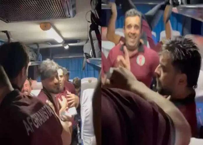 ಮೈದಾನದಿಂದ ಹೊಟೇಲ್ಗೆ ಹೋಗುವಾಗ ಅಫ್ಘಾನಿಸ್ತಾನದ ಆಟಗಾರರು ಬಸ್ನಲ್ಲಿ ಕುಣಿದು ಕುಪ್ಪಳಿಸಿದರು. ಬಾಲಿವುಡ್ ನಟ ಶಾರುಖ್ ಖಾನ್ ಅಭಿನಯದ ‘ಚೆನ್ನೈ ಎಕ್ಸ್ ಪ್ರೆಸ್’ ಸಿನಿಮಾದ ‘ಲುಂಗಿ ಡ್ಯಾನ್ಸ್’ ಹಾಡಿಗೆ ಆಫ್ಘನ್ ಆಟಗಾರರು ಡ್ಯಾನ್ಸ್ ಮಾಡಿ ಸಂಭ್ರಮಿಸಿದ ವಿಡಿಯೋ ಸಾಮಾಜಿಕ ಜಾಲತಾಣದಲ್ಲಿ ವೈರಲ್ ಆಗಿದೆ.