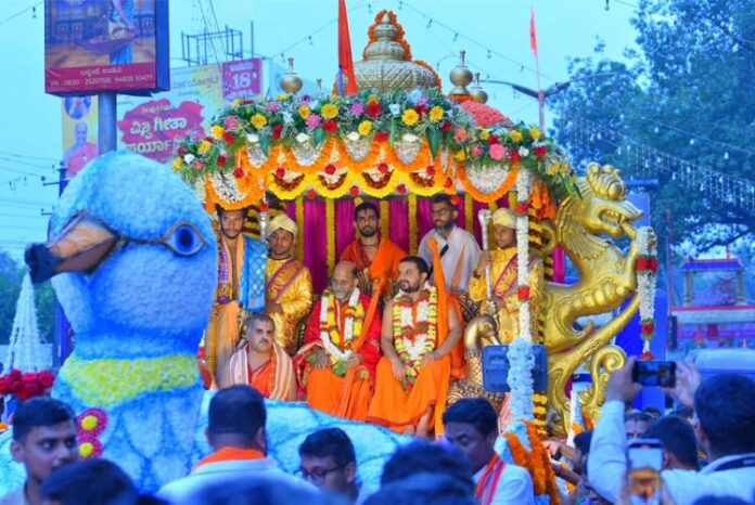 ನಗರದ ಜೋಡುಕಟ್ಟೆಗೆ ಆಗಮಿಸಿದ ಉಭಯ ಶ್ರೀಗಳನ್ನು ಅಲಂಕೃತ ಹಂಸರಥದಲ್ಲಿ ಕುಳ್ಳಿರಿಸಿ ಭವ್ಯ ಮೆರವಣಿಗೆಯ ಮೂಲಕ ಉಡುಪಿ ಪುರಪ್ರವೇಶ ಮಾಡಲಾಯಿತು.