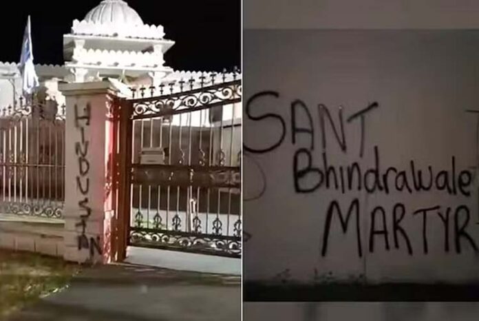 ಆಸ್ಟ್ರೇಲಿಯಾದಲ್ಲಿ ಹಿಂದು ದೇವಾಲಯದಲ್ಲಿ ಖಲಿಸ್ತಾನ್ ಬೆಂಬಲಿಗರು ಗೋಡೆಗಳ ಮೇಲೆ ಭಾರತ ವಿರೋಧಿ ಬರಹಗಳನ್ನು ಗೀಚಿರುವ ಘಟನೆ ವರದಿಯಾಗಿದೆ.
