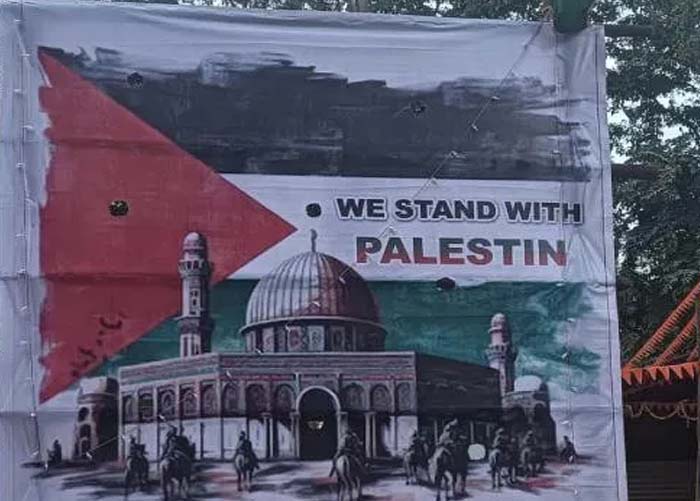 ಹಿಂದೂ ಮುಸ್ಲಿಮರ ಧಾರ್ಮಿಕ ಸ್ಥಳವಾಗಿರುವ ಶಿವಮೊಗ್ಗದ ಹಣಗೆರೆಕಟ್ಟೆಯಲ್ಲಿ ಪ್ಯಾಲೆಸ್ತೀನ್‌ ಪರ ಫ್ಲೆಕ್ಸ್‌ ಹಾಕಲಾಗಿದೆ.