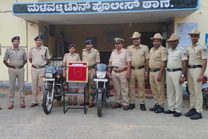 ಎರಡು ದಿನಗಳ ಹಿಂದೆ ಪಟ್ಟಣದಲ್ಲಿ ಗಸ್ತಿನಲ್ಲಿದ್ದ ಪೋಲೀಸರು ಅನಾಮಾನಾ ಸ್ಪದವಾಗಿ ತಿರುಗಾಡುತ್ತಿದ್ದ ಆರೋಪಿ ಗಳನ್ನು ಬಂಧಿಸಿ ತೀವ್ರ ವಿಚಾರಣೆಗೆ ಒಳ ಪಡಿಸಿದಾಗ ಅಮೃತೇಶ್ವರನಹಳ್ಳಿ ಸರ ಕಳ್ಳತನ ಪ್ರಕರಣ ಹಾಗೂ ಬೈಕ್ ಕಳವು ಪ್ರಕರಣದಲ್ಲಿ ಭಾಗಿಯಾಗಿದ್ದಾಗಿ ಆರೋ ಪಿಗಳು ತಪ್ಪೊಪ್ಪಿಕೊಂಡಿದ್ದಾರೆ ಎಂದು ಪೊಲೀಸರು ತಿಳಿಸಿದ್ದಾರೆ. ಬಂಧಿತ ಆರೋಪಿಗಳಿಂದ ಕಳವು ಮಾಡಿದ್ದ ಎರಡು ಬೈಕ್ಗಳು ಹಾಗೂ 25 ಗ್ರಾಂ. ಚಿನ್ನದ ಸರವನ್ನು ವಶಪಡಿಸಿಕೊಂಡಿ ದ್ದಾರೆ.
