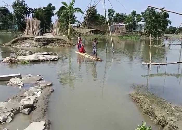 ಅಸ್ಸಾಂನ ಬರ್ಪೇಟಾ ಜಿಲ್ಲೆಯಲ್ಲಿ ಪ್ರವಾಹ ಪರಿಸ್ಥಿತಿಯಿಂದಾಗಿ ರಸ್ತೆಗಳು ನೀರಿನ ರಭಸಕ್ಕೆ ಕೊಚ್ಚಿ ಹೋಗಿದ್ದು, ಗ್ರಾಮಸ್ಥರು ಪರದಡುವ ಸ್ಥಿತಿ ಬಂದೊದಗಿದೆ. ಜಿಲ್ಲೆಯ ಸುಖುವರ್ಜಾರ್ ಮಹಿಷ್ಖುತಿ ಪ್ರದೇಶದ ಗ್ರಾಮಸ್ಥರು ಪ್ರವಾಹದಿಂದ ಪ್ರಭಾವಿತರಾಗಿದ್ದು, ರಸ್ತೆಯಿಲ್ಲದೆ ಭಾರೀ ಸಮಸ್ಯೆಗಳನ್ನು ಎದುರಿಸುತ್ತಿದ್ದಾರೆ.