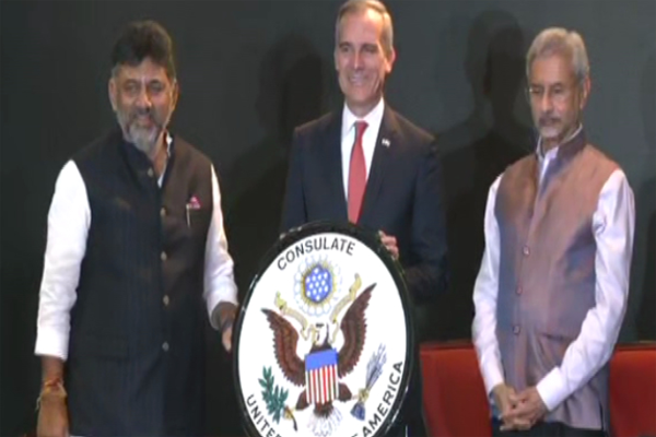 ಡಿಸಿಎಂ ಡಿ.ಕೆ.ಶಿವಕುಮಾರ್, ಕೇಂದ್ರ ವಿದೇಶಾಂಗ ಸಚಿವ ಜೈಶಂಕರ್ ಮತ್ತು ಭಾರತದಲ್ಲಿನ ಅಮೆರಿಕ ರಾಯಭಾರಿ ಎರಿಕ್ ಗಾರ್ಸೆಟ್ಟಿ ಅವರು ತಾತ್ಕಾಲಿಕ ರಾಯಭಾರಿ ಕಚೇರಿಯನ್ನು ಉದ್ಘಾಟಿಸಿದರು.