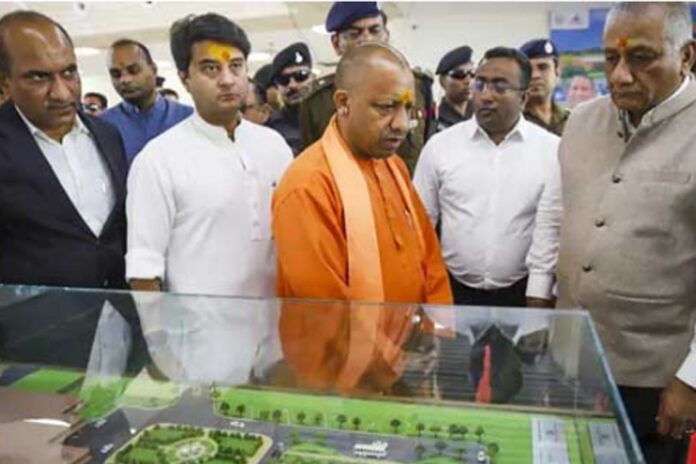 ನಾಗರಿಕ ವಿಮಾನಯಾನ ಸಚಿವ ಜ್ಯೋತಿರಾದಿತ್ಯ ಸಿಂಧಿಯಾ ಮತ್ತು ನಾಗರಿಕ ವಿಮಾನಯಾನ ರಾಜ್ಯ ಸಚಿವ ವಿಕೆ ಸಿಂಗ್ ಅವರೊಂದಿಗೆ ವಿಮಾನ ನಿಲ್ದಾಣಕ್ಕೆ ಮುಖ್ಯಮಂತ್ರಿ ಯೋಗಿ ಆದಿತ್ಯನಾಥ್‌ ಇಂದು ಭೇಟಿ ನೀಡಿ, ಪರಿಶೀಲನೆ ನಡೆಸಿ, ಮಾಹಿತಿ ನೀಡಿದರು.