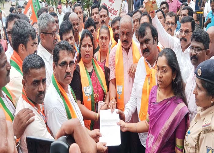 ಬಿಜೆಪಿ ಮುಖಂಡರು ಮತ್ತು ಕಾರ್ಯಕರ್ತರು ಕಾಂಗ್ರೆಸ್ ಸರ್ಕಾರ ವಿರುದ್ಧ ಆಕ್ರೋಶ ವ್ಯಕ್ತಪಡಿಸಿ ಮುಡಾ ಹಗರಣದಲ್ಲಿ ಸಿಎಂ ಸಿದ್ದರಾಮಯ್ಯ ನೇರವಾಗಿ ಭಾಗಿಯಾಗಿದ್ದು , ಹೀಗಾಗಿ ಅವರು ತಮ್ಮ ಸ್ಥಾನಕ್ಕೆ ರಾಜೀನಾಮೆ ನೀಡಬೇಕೆಂದು ಆಗ್ರಹಿಸಿದರು.