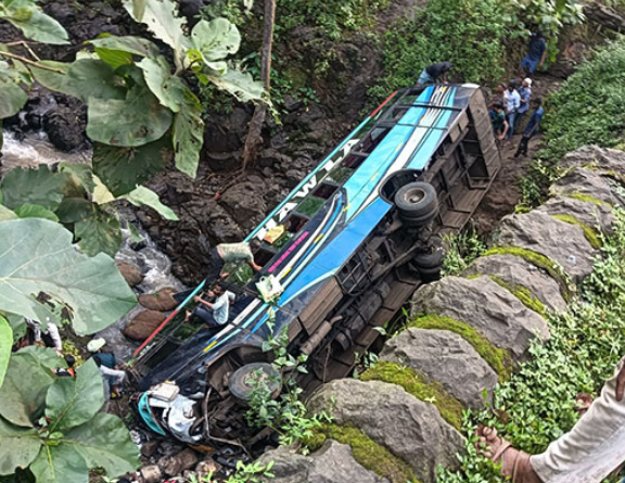 ಮಹಾರಾಷ್ಟ್ರದ ಅಮರಾವತಿಯ ಪರತ್ವಾಡಿ ಧಾನಿ ಮಾರ್ಗದ ಸೇಮದೋಹ್ ಬಳಿ ಖಾಸಗಿ ಬಸ್ ಬೆಳಗ್ಗೆ ಮೆಲ್ಘಾಟ್ನ ಅಂಕುಡೊಂಕಾದ ರಸ್ತೆಯಲ್ಲಿ ಚಾಲಕನ ನಿಯಂತ್ರಣ ತಪ್ಪಿ ಸಮೀಪದ ಸೇತುವೆಯಿಂದ ಕೆಳಗೆ ಬಿದ್ದ ಪರಿಣಾಮ ಅಪಘಾತ ಸಂಭವಿಸಿದೆ.
