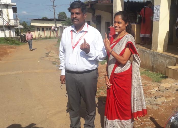ಜಿಲ್ಲಾಧಿಕಾರಿ ಮತ ಚಲಾವಣೆ: ಜಿಲ್ಲಾಧಿಕಾರಿ ಹಾಗೂ ಜಿಲ್ಲಾ ಚುನಾವಣಾಧಿಕಾರಿ ಡಾ.ಬಿ.ಸಿ.ಸತೀಶ ಅವರು ಮಡಿಕೇರಿ ನಗರದ ತಾಲೂಕು ಪಂಚಾಯತ್ ಮತಗಟ್ಟೆಯಲ್ಲಿ ಪತ್ನಿ ರೂಪಶ್ರೀ ಅವರೊಂದಿಗೆ ಬಂದು ಮತದಾನ ಮಾಡಿದರು.