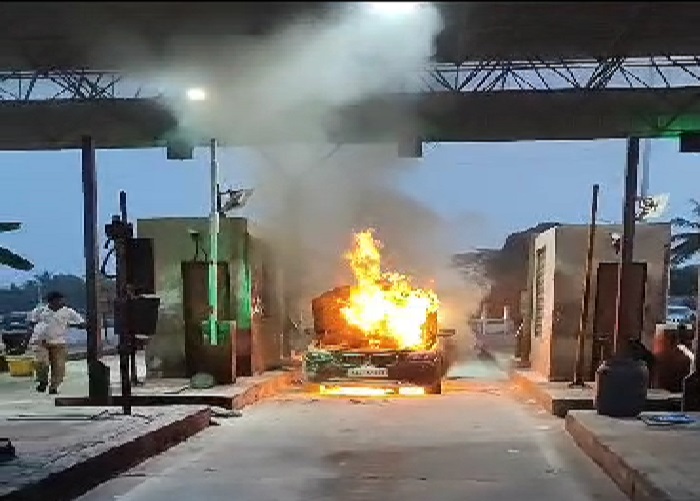 ಮೈಸೂರು ಹೆದ್ದಾರಿಯ ಟೋಲ್‌ ಬಳಿ ಹೊತ್ತಿ ಉರಿದ ಕಾರು