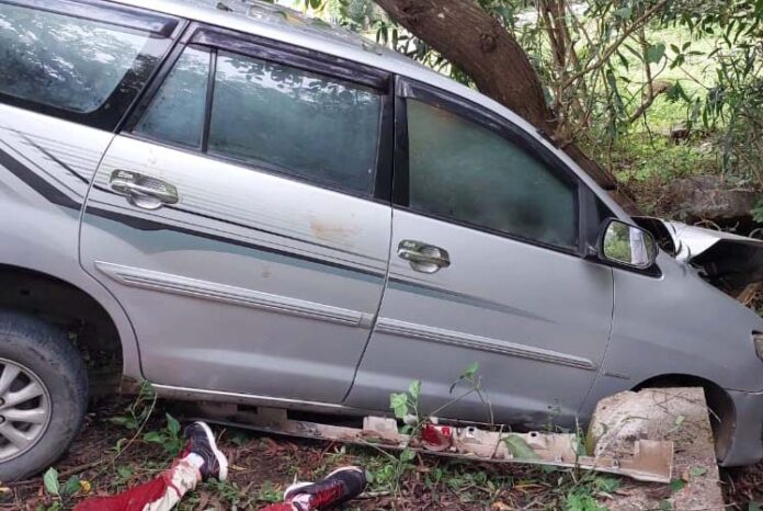 ಚಾಲಕನ ನಿಯಂತ್ರಣ ತಪ್ಪಿದ ವಾಹನ ರಸ್ತೆ ಬದಿಯ ಮರಕ್ಕೆ ಡಿಕ್ಕಿ ಹೊಡೆದು ಅಪಘಾತ ಸಂಭವಿಸಿದೆ.