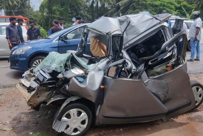 ಸರಣಿ ಅಪಘಾತಕ್ಕೆ ನಜ್ಜುಗುಜ್ಜಾದ ಕಾರು: ಚಾಲಕ ಅಪಾಯದಿಂದ ಪಾರು