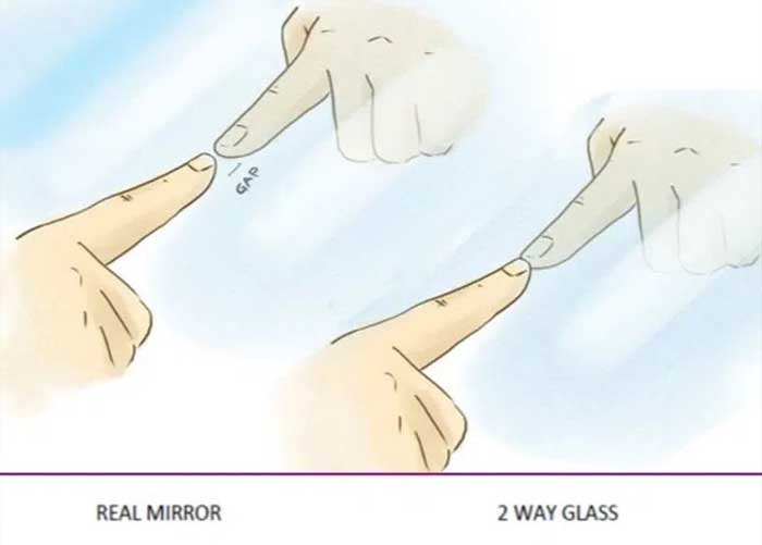 ಇದು ನಿಜವಾದ ಕನ್ನಡಿಯೇ ಅಥವಾ ಅಲ್ಲವೇ ಎಂದು ತಿಳಿಯಲು, ನಿಮ್ಮ ಬೆರಳಿನ ತುದಿಯನ್ನು ಕನ್ನಡಿಯ ಮೇಲೆ ಇರಿಸಿ. ನಿಮ್ಮ ಬೆರಳಿನ ತುದಿ ಮತ್ತು ಗೋಚರಿಸುವ ಪ್ರತಿಬಿಂಬದ ನಡುವೆ ಅಂತರವಿದ್ದರೆ ಅದನ್ನು ನಿಜವಾದ ಕನ್ನಡಿ ಎಂದು ಪರಿಗಣಿಸಬೇಕು. ಮತ್ತು 2 ವೇ ಗ್ಲಾಸ್.. ನಿಮ್ಮ ಬೆರಳಿನ ತುದಿಯು ಕನ್ನಡಿಯಲ್ಲಿರುವ ಪ್ರತಿಬಿಂಬವನ್ನು ಸ್ಪರ್ಶಿಸುತ್ತಿದ್ದರೆ ನೀವು ತುಂಬಾ ಜಾಗರೂಕರಾಗಿರಬೇಕು. ಇದು 2 ವೇ ಗ್ಲಾಸ್ ಆಗಿದೆ. ನೀವು ಇನ್ನೊಂದು ಕಡೆಯಿಂದ ನೋಡುವ ಸಾಧ್ಯತೆಗಳಿವೆ. ವಿಶೇಷವಾಗಿ ಮಹಿಳೆಯರು ಇದನ್ನು ನೆನಪಿನಲ್ಲಿಟ್ಟುಕೊಳ್ಳಬೇಕು. ನೀವು ನೀವು ಎಲ್ಲಿಗೆ ಹೋದರೂ ನಿಮ್ಮ ಬೆರಳುಗಳಿಂದ ಕನ್ನಡಿಯನ್ನು ಪರೀಕ್ಷಿಸಿ. ನಮಗೆ ನಮ್ಮ ಭದ್ರತೆ ತುಂಬಾ ಬೇಕು ಇದನ್ನು ಹೆಣ್ಮಕ್ಕಳು ಗಮನದಲ್ಲಿಡಿ.