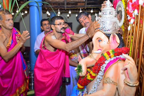 ಸುಮಾರು 1 ಕೆ.ಜಿ 475 ಗ್ರಾಂನ ಬೆಳ್ಳಿ ಕಿರೀಟ, 202 ಗ್ರಾಂ ತೂಕದ ಪಾಶ, 191 ಗ್ರಾಂನ ಅಂಕುಶ ಸೇರಿದಂತೆ ಒಟ್ಟು 2 ಲಕ್ಷದ 75 ಸಾವಿರ ಮೌಲ್ಯದ ಬೆಳ್ಳಿಯ ವಸ್ತುಗಳನ್ನು ಪುರೋಹಿತ ರಮಾನಂದ ಭಟ್ ಶ್ರೀ ಮಹಾಣಪತಿಗೆ ತೊಡಿಸಿದರು.