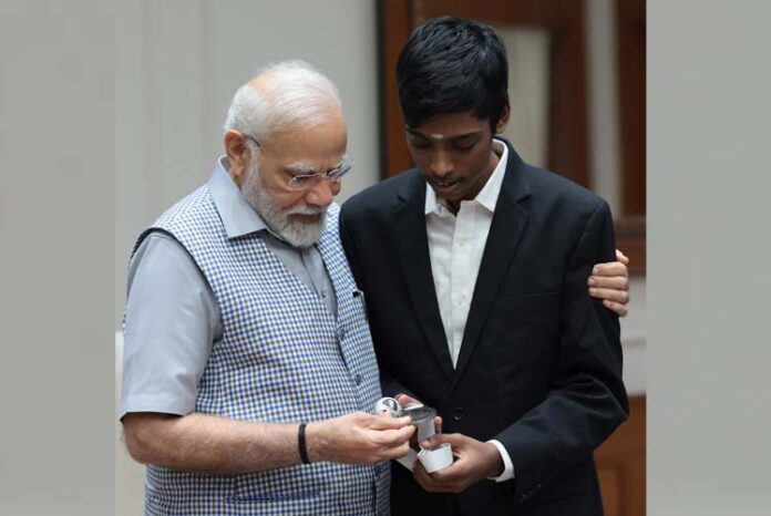 ಚೆಸ್‌ ವಿಶ್ವಕಪ್‌ ಟೂರ್ನಿಯಲ್ಲಿ ದೇಶಕ್ಕೆ ರನ್ನರ್‌ಅಪ್‌ ಸ್ಥಾನ ಪಡೆಯುವ ಮೂಲಕ ದೇಶಕ್ಕೆ ಕಿರೀಟ ತಂದ ತಮಿಳುನಾಡಿನ 18 ವರ್ಷದ ಆಟಗಾರ ಆರ್‌. ಪ್ರಜ್ಞಾನಂದ ಗುರುವಾರ ಪ್ರಧಾನಿ ನರೇಂದ್ರ ಮೋದಿ ಅವರನ್ನು ಭೇಟಿಯಾದರು.