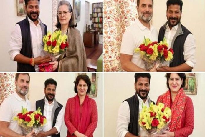 ತೆಲಂಗಾಣದ ನೂತನ ಮುಖ್ಯಮಂತ್ರಿಯಾಗಿ ಆಯ್ಕೆ ಯಾಗಿದ್ದ ರೇವಂತ್ ರೆಡ್ಡಿ ಇಂದು ಕಾಂಗ್ರೆಸ್ ದೆಹಲಿಗೆ ತೆರಳಿ ಪ್ರಮಾಣ ವಚನ ಸ್ವೀಕಾರ ಕಾರ್ಯಕ್ರಮಕ್ಕೆ ಸೋನಿಯಾ ಗಾಂಧಿ , ರಾಹುಲ್ ಗಾಂಧಿ ಮತ್ತು ಪ್ರಿಯಾಂಕಾ ಗಾಂಧಿ ಅವರನ್ನು ಆಹ್ವಾನಿಸಿದ್ದಾರೆ.