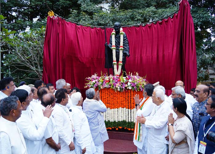 ಮಹಾತ್ಮ ಗಾಂಧೀಜಿ ಅಧ್ಯಕ್ಷತೆಯಲ್ಲಿ 1924ರಲ್ಲಿ ಜರುಗಿದ ಕಾಂಗ್ರೆಸ್ ಅಧಿವೇಶನದ ಶತಮಾನೊತ್ಸವ ಅಂಗವಾಗಿ ನಗರದ ಟಿಳಕವಾಡಿಯಲ್ಲಿನ ವೀರಸೌಧದಲ್ಲಿ ಮಹಾತ್ಮ ಗಾಂಧೀಜಿ ನೂತನ ಪ್ರತಿಮೆಯನ್ನು ಮುಖ್ಯಮಂತ್ರಿ ಸಿದ್ಧರಾಮಯ್ಯ ಅವರು ಗುರುವಾರ ಅನಾವರಣಗೊಳಿಸಿದರು. ಇದರೊಂದಿಗೆ ‘ಗಾಂಧಿ ಭಾರತ’ ಕಾರ್ಯಕ್ರಮಗಳಿಗೆ ಚಾಲನೆ ನೀಡಿದರು.