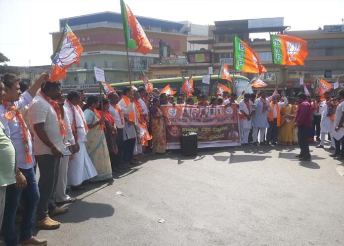 ಕಾಂಗ್ರೆಸ್ ಕರಾಳ ಮುಖ ಬಯಲು: ಬಿಜೆಪಿ ಪ್ರತಿಭಟನೆ