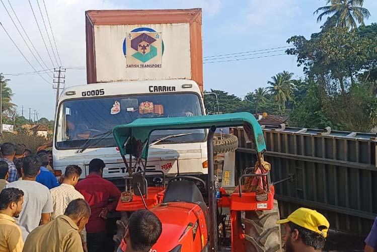 ಮಂಗಳೂರು-ಬೆಂಗಳೂರು ರಸ್ತೆಯಲ್ಲಿ ಕಂಟೈನರ್- ಟ್ರ್ಯಾಕ್ಟರ್ ಡಿಕ್ಕಿ