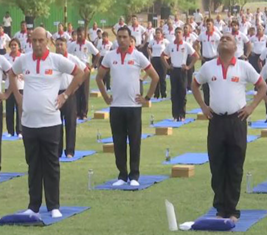 ರಕ್ಷಣಾ ಸಚಿವ ರಾಜನಾಥ್ ಸಿಂಗ್ ಮತ್ತು ಸೇನಾ ಮುಖ್ಯಸ್ಥ ಜನರಲ್ ಮನೋಜ್ ಪಾಂಡೆ ಅವರು ಭಾರತೀಯ ಸೇನೆಯ ಸಿಬ್ಬಂದಿಗಳೊಂದಿಗೆ ಉತ್ತರ ಪ್ರದೇಶದ ಮಥುರಾ ನಗರದಲ್ಲಿ 2024 ರ ಅಂತರಾಷ್ಟ್ರೀಯ ಯೋಗ ದಿನಾಚರಣೆಯ ಸಂದರ್ಭದಲ್ಲಿ ಯೋಗ ಪ್ರದರ್ಶಿಸಿದರು.