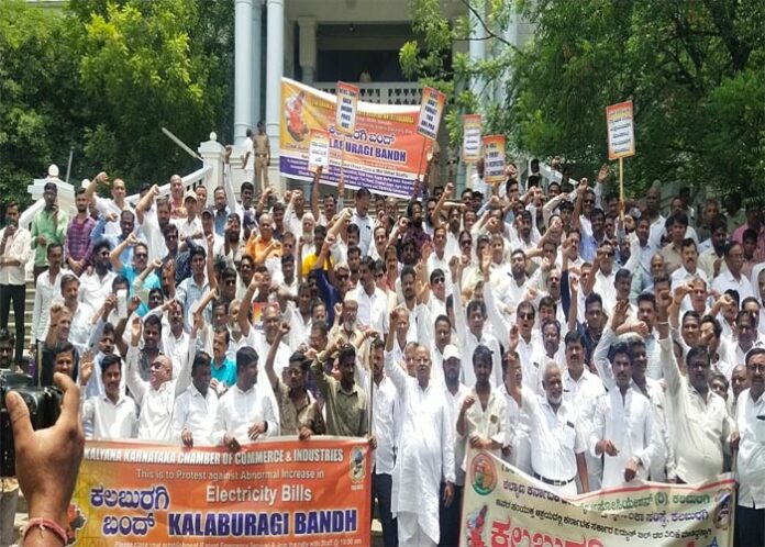 ಕಲ್ಯಾಣ ಕನಾ೯ಟಕ ವಾಣಿಜ್ಯ ಮತ್ತು ಕೈಗಾರಿಕಾ ಸಂಸ್ಥೆ ಕಲಬುರಗಿ, ಗುಲ್ಬರ್ಗ ದಾಲ್ ಮಿಲ್ಲಸ್೯ ಅಸೋಸಿಯೇಷನ್ ಕಲಬುರಗಿ ಇವರುಗಳ ಸಂಯುಕ್ತಾಶ್ರಯದಲ್ಲಿ ಕನಾ೯ಟಕ ಸಕಾ೯ರ ವಿದ್ಯುತ್ ದರ ಏರಿಕೆ ಮಾಡಿರುವ ಹಿನ್ನೆಲೆಯಲ್ಲಿ ಕಲಬುರಗಿ ಬಂದ್ ಕರೆ ನೀಡಿದ ಹಿನ್ನೆಲೆಯಲ್ಲಿ ಕಲಬುರಗಿ ಬಂದ್ ಮಾಡಿಸಿ ಪ್ರತಿಭಟನೆ ನಡೆಸಲಾಯಿತು.
