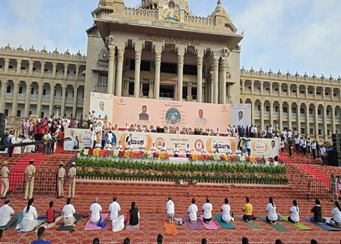 ಕರ್ನಾಟಕ ಸರ್ಕಾರದ ವತಿಯಿಂದ ವಿಧಾನಸೌಧದ ಎದುರು ಆಯೋಜಿಸಿದ್ದ ʻಯೋಗೋತ್ಸವʼ ಕಾರ್ಯಕ್ರಮದಲ್ಲಿ 10ನೇ ಅಂತಾರಾಷ್ಟ್ರೀಯ ಯೋಗ ದಿನವನ್ನು ಆಚರಿಸಲಾಯಿತು.