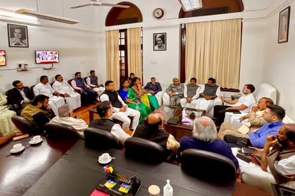 ಇತ್ತ ಸದನ ನಡೆಯುವ ಮೊದಲು ರಾಜ್ಯಸಭೆ ವಿಪಕ್ಷ ನಾಯಕ ಖರ್ಗೆ ಅವರ ಕಚೇರಿಯಲ್ಲಿ INDIA ಒಕ್ಕೂಟದ ಸದಸ್ಯರು ಸಭೆ ನಡೆಸಿದರು. ಈ ಸಭೆಗೆ ಟಿಎಂಸಿ ಸದಸ್ಯರು ಗೈರಾಗಿದ್ದರು.