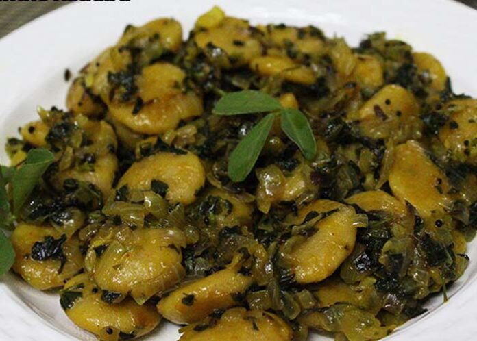 ನಂತರ ಬಾಣಲೆಗೆ ಎಣ್ಣೆ ಸಾಸಿವೆ ಜೀರಿಗೆ ಹಾಕಿ, ನಂತರ ಈರುಳ್ಳಿ, ಟೊಮ್ಯಾಟೊ, ಮೆಂತ್ಯೆಸೊಪ್ಪು, ಖಾರದಪುಡಿ, ಸಾಂಬಾರ್‌ ಪುಡಿ ಹಾಕಿ ಮಿಕ್ಸ್‌ ಮಾಡಿ