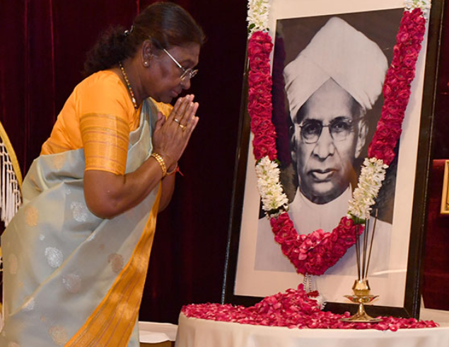 ಭಾರತದ ಮಾಜಿ ರಾಷ್ಟ್ರಪತಿ ಡಾ.ಸರ್ವಪಲ್ಲಿ ರಾಧಾಕೃಷ್ಣನ್ ಅವರ ಜನ್ಮದಿನದ ಅಂಗವಾಗಿ ರಾಷ್ಟ್ರಪತಿ ಭವನದಲ್ಲಿ ರಾಷ್ಟ್ರಪತಿ ದ್ರೌಪದಿ ಮುರ್ಮು ಅವರಿಗೆ ಪುಷ್ಪ ನಮನ ಸಲ್ಲಿಸಿದರು.