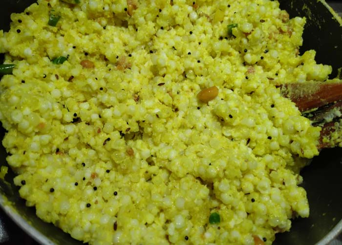 ಹಿಂದಿನ ದಿನ ರಾತ್ರಿಯೇ ಸಬ್ಬಕ್ಕಿಯನ್ನು 3-4 ಬಾರಿ ತೊಳೆದು ಸಬ್ಬಕ್ಕಿ ಮುಳುಗುವಷ್ಟು ನೀರು ಹಾಕಿ ನೆನೆಸಿಟ್ಟುಕೊಳ್ಳಬೇಕು. ಮರುದಿನ ಬೆಳಿಗ್ಗೆ ಒಂದು ಬಾಣಲೆಗೆ ಎಣ್ಣೆ ಹಾಕಿ, ಕಾದನಂತರ ಸಾಸಿವೆ, ಕರಿಬೇವು, ಜೀರಿಗೆ ಹಾಕಿ ಕೆಂಪಗೆ ಹುರಿದುಕೊಳ್ಳಿ. ನಂತರ ನೆನೆಸಿಟ್ಟ ಸಬ್ಬಕ್ಕಿಯನ್ನು ಹಾಕಿ ಸಣ್ಣ ಉರಿಯಲ್ಲಿ ಬೇಯಲು ಬಿಡಿ. ನಂತರ ಇದಕ್ಕೆ ಉಪ್ಪು, ಕಡಲೆಕಾಯಿ ಬೀಜದ ಪುಡಿ ಹಾಕಿ ಮಿಶ್ರಣ ಮಾಡಿದರೆ, ರುಚಿಕರವಾದ ಸಬ್ಬಕ್ಕಿ ಕಿಚಡಿ ಸವಿಯಲು ಸಿದ್ಧ.