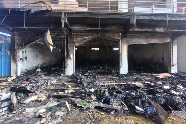 ಘಟನೆ ಸಂಭವಿಸಿ 40ಗಂಟೆ ಕಳೆದರೂ ಕೂಡ ಅಂಗಡಿಯೊಳಗಿನ ಬೆಂಕಿಯ ಕಿಚ್ಚು ಆರಿರಲಿಲ್ಲ. ಶುಕ್ರವಾರ ಸ್ಥಳಕ್ಕಾಗಮಿಸಿದ ಅಗ್ನಿಶಾಮಕ ದಳದ ಸಿಬ್ಬಂದಿಗಳು ಅಂಗಡಿಗಳ ಮೇಲ್ಚಾವಣಿ ಮತ್ತು ಕಬ್ಬಿಣದ ಶೆಲ್ಟರ್ಗಳನ್ನು ಸುತ್ತಿಗೆಯಿಂದ ಹೊಡೆದು ಕಳಚಿ ಬೆಂಕಿ ನಂದಿಸಿದರು.