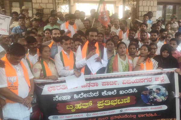 ಹುಬ್ಬಳ್ಳಿಯ ನೇಹಾ ಹಿರೇಮಠ ಕೊಲೆ ಪ್ರಕರಣವನ್ನು ಖಂಡಿಸಿ ಹೊಸಪೇಟೆಯಲ್ಲಿ ಸೋಮವಾರ ಜಿಲ್ಲಾ ಬಿಜೆಪಿಯಿಂದ ಹಮ್ಮಿಕೊಂಡಿದ್ದ ಪ್ರತಿಭಟನೆಯನ್ನು ಉದ್ದೇಶಿಸಿ ಮಾತನಾಡಿದ ಅವರು, ಕಾಂಗ್ರೆಸ್ ಅಧಿಕಾರಕ್ಕೆ ಬಂದು ಒಂದು ವರ್ಷದಲ್ಲಿ ಕಾನೂನಿನ ಸುವ್ಯವಸ್ಥೆ ಸಂಪೂರ್ಣ ಹದಗೆಟ್ಟಿದೆ. ರಾಜ್ಯದಲ್ಲಿ ಜಂಗಲ್ ರಾಜ್ ಶುರುವಾಗಿದೆ. ಹುಬ್ಬಳ್ಳಿಯಲ್ಲಿ ನೇಹಾ ಕೊಲೆ, ಗದಗಿನಲ್ಲಿ ನಾಲ್ವರು, ಬೆಂಗಳೂರಿನಲ್ಲಿ ಜೋಡಿ ಕೊಲೆ ಹಾಗೂ ಬೀದರ್ನಲ್ಲಿ ಒಬ್ಬರು ಸರಣಿಯಾಗಿ ಹತ್ಯೆಯಾಗಿದ್ದಾರೆ. ರಾಜ್ಯಾದ್ಯಂತ ಕೊಲೆ, ಅತ್ಯಾಚಾರ, ದೌರ್ಜನ್ಯಗಳು ಹೆಚ್ಚುತ್ತಿವೆ. ಹೆಣ್ಣು ಮಕ್ಕಳನ್ನು ಶಾಲಾ ಕಾಲೇಜಿಗೆ ಕಳುಹಿಸಲು ಜನ ಹಿಂದೇಟು ಹಾಕುವಂತಾಗಿದೆ. ಆದರೆ, ಕೊಲೆ ಪ್ರಕರಣ ಅವರ ವೈಯಕ್ತಿಕ ಎನ್ನುವ ಮೂಲಕ ಗೃಹ ಸಚಿವರು ಬೇಜವಾಬ್ದಾರಿತನ ತೋರಿದ್ದಾರೆ. ಸಿದ್ದರಾಮಯ್ಯ ಅವರ ಆಡಳಿತ ತುಘುಲಕ್ ದರ್ಬಾರ್ ಎಂಬoತಿದೆ ಎಂದು ಆಕ್ರೋಶ ವ್ಯಕ್ತಪಡಿಸಿದರು.