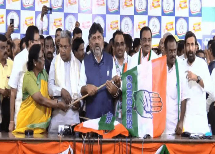 ಬೆಂಗೂರಿನ ಕ್ವೀನ್ಸ್ ರಸ್ತೆಯ ಕೆಪಿಸಿಸಿ ಕಚೇರಿಯಲ್ಲಿ ಹಮ್ಮಿಕೊಂಡಿದ್ದ ಸಮಾರಂಭದಲ್ಲಿ ಪ್ರತಿಪಕ್ಷ ನಾಯಕ ಸಿದ್ದರಾಮಯ್ಯ ಹಾಗೂ ಕೆಪಿಸಿಸಿ ಅಧ್ಯಕ್ಷ ಡಿ.ಕೆ ಶಿವಕುಮಾರ್ ಸಮ್ಮುಖದಲ್ಲಿ ತಮ್ಮ ಬೆಂಬಲಿಗರ ಕೈಹಿಡಿದರು.