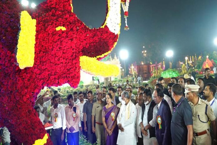 ಮೈಸೂರು ಅರಮನೆ ಮಂಡಳಿ ವತಿಯಿಂದ ಶುಕ್ರವಾರ ರಾತ್ರಿ ಅರಮನೆ ಆವರಣದಲ್ಲಿ ಆಯೋಜಿಸಲಾಗಿರುವ ಅರಮನೆ ಫಲಪುಷ್ಪ ಪ್ರದರ್ಶನ ವನ್ನು ಮುಖ್ಯ ಮಂತ್ರಿ ಸಿದ್ದರಾಮಯ್ಯನ ನವರು ಉದ್ಘಾಟಿಸಿದರು. ಬಳಿಕ ಫಲಪುಷ್ಪ ಪ್ರದರ್ಶನವನ್ನು ವೀಕ್ಷಿಸಿ ಸಂತೋಷ ವ್ಯಕ್ತ ಪಡಿಸಿದರು.