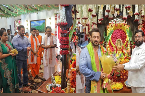 ಬಾಲಿವುಡ್ ನಟ ಸಲ್ಮಾನ್ ಖಾನ್ ಅವರು ತಮ್ಮ ಸಹೋದರಿಯೊಂದಿಗೆ ಮಹಾರಾಷ್ಟ್ರದ ಸಿಎಂ ಏಕನಾಥ್ ಶಿಂಧೆ ಅವರ ನಿವಾಸದಲ್ಲಿ ಗಣೇಶ ಪೂಜೆಯಲ್ಲಿ ಪಾಲ್ಗೊಂಡರು.