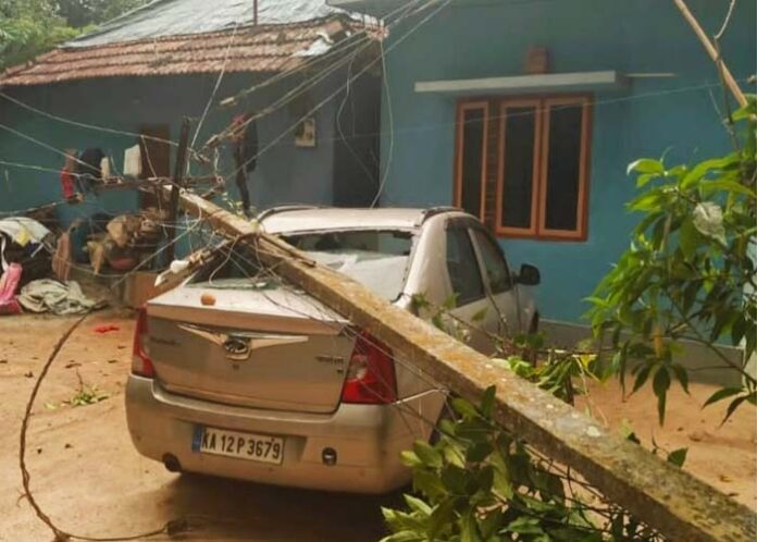 ವಿದ್ಯುತ್ ಕಂಬ ಬಿದ್ದು ಹಾನಿ: ವೀರಾಜಪೇಟೆ ತಾಲೂಕಿನ ಅಮ್ಮತ್ತಿ ಗ್ರಾಮದ ಪುಲಿಯೇರಿಯಲ್ಲಿ ಮನೆ ಮುಂದೆ ನಿಲ್ಲಿಸಿದ್ದ ಕಾರಿ‌ನ ಮೇಲೆ ವಿದ್ಯುತ್ ಕಂಬ ಮುರಿದು ಬಿದ್ದ ಪರಿಣಾಮ ಕಾರಿನ ಮೇಲ್ಭಾಗ ಸಂಪೂರ್ಣ ಜಖಂಗೊಂಡಿದೆ. ಕಾರು ಎಂ.ಕೆ.ಹರಿದಾಸ್ ಎಂಬವರಿಗೆ ಸೇರಿದ್ದೆನ್ನಲಾಗಿದೆ.