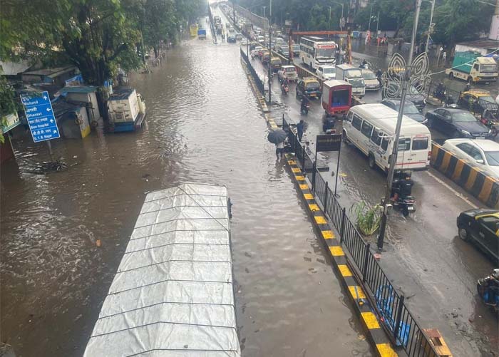 ಭಾರೀ ಮಳೆಯಿಂದಾಗಿ ಮುಂಬೈ ರಸ್ತೆಗಳು ಜಲಾವೃತಗೊಂಡು ಸಾರ್ವಜನಿಕ ಮತ್ತು ಖಾಸಗಿ ಸಾರಿಗೆಗೆ ಅಡಚಣೆಯುಂಟಾಗಿದೆ.