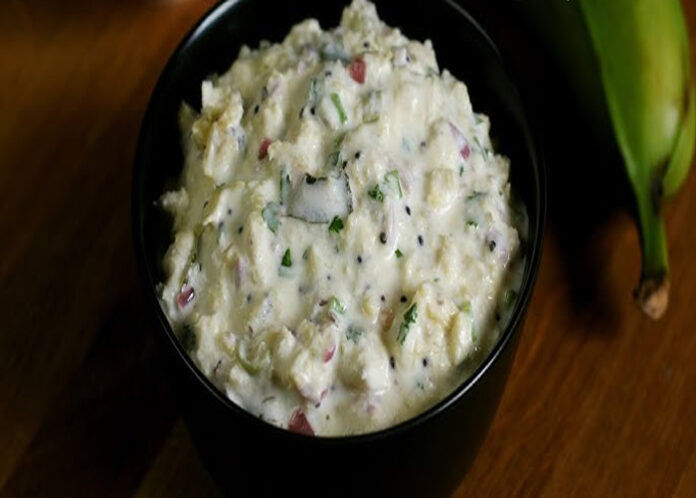 * ಕುಕ್ಕರ್ ತಣ್ಣಗಾದ ಬಳಿಕ ಬೇಯಿಸಿದ ಬಾಳೆಕಾಯಿಯ ಸಿಪ್ಪೆಯನ್ನು ತೆಗೆಯಿರಿ. ನಂತರ ಚೆನ್ನಾಗಿ ಅದನ್ನು ಹಿಸುಕಿಕೊಳ್ಳಿ.