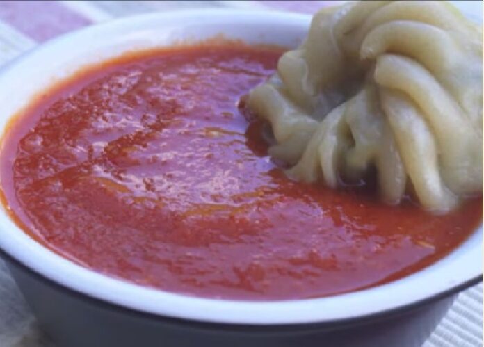 ಈಗ ಕೆಂಪು ಮೆಣಸು ಹಾಗೂ ಬೆಳ್ಳುಳ್ಳಿಯ ಖಾರವಾಗಿರುವ ಈ ಚಟ್ನಿಯನ್ನು ಬಿಸಿಬಿಸಿಯಾದ ಮೊಮೊಗಳೊ೦ದಿಗೆ ಸವಿಯಿರಿ.